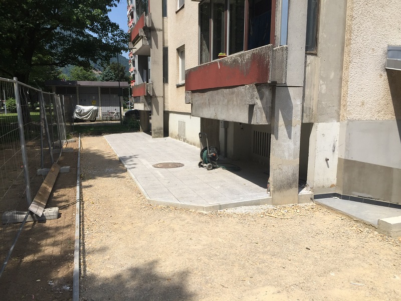 Blok so odkopali podlago dobro očistili, popravili, izravnali in utrdili nato pa naredili novo učinkovito in plinotesno hladno bitumensko hidroizolacijo.