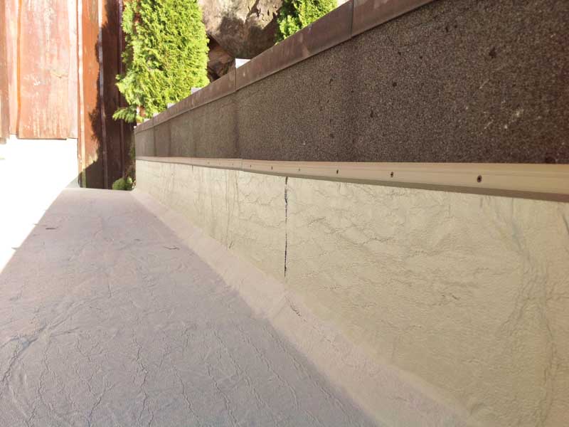 I april 2015 har vi isolert en garasjesinnfart tak på privathus i Oslo. Fjernet gammel membran og veggkledning, renset betongoverflate med høytrykkspyler. Betongoverflate med spesiell primer primet og etterpå oppdrag fra to laget slemming. Kompensere på betongoverflate med betong og skråning. Plassere 5cm isolasjonsplatene på betongoverflaten, Isolatjonplatene grunning med væske folie og legge membran. Montering veggbeslag over membran Montering veggkledning. Rengjøring av byggeplass