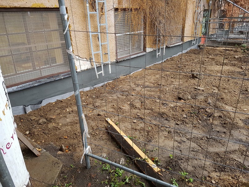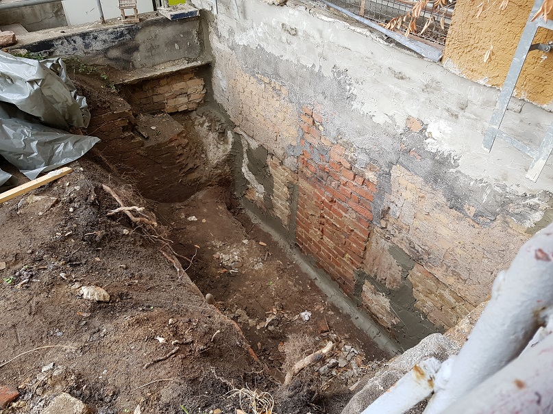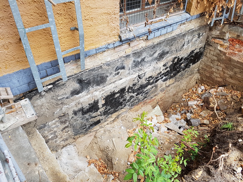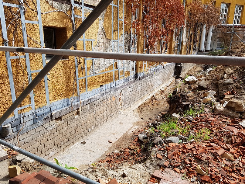 Kelleraußenabdichtung mittels u.a. KÖSTER Crisin 76 an einer denkmalgeschützten Schule von 1872.